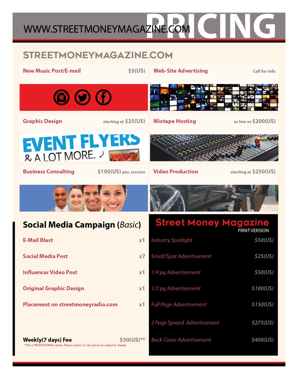 1/2 Page Ad in Street Money Magazine$100$100https://schema.org/InStockusdSTREET MONEYSTREET MONEY 1/2 Page Ad in Street Money Magazine I want this!Size25.9 MBLength28 pagesAdd to wishlist New wishlistShare on XShare on Facebook Copy linkCopy product URL