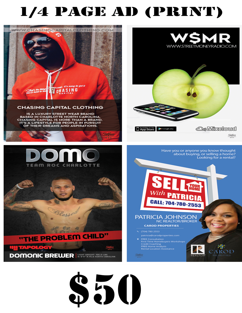 1/4 Page Ad in Street Money Magazine$50$50https://schema.org/InStockusdSTREET MONEYSTREET MONEY 1/4 Page ad in the print version of Street Money Magazine I want this!Size25.9 MBLength28 pagesAdd to wishlist New wishlistShareShare on XShare on Facebook Copy linkCopy product URL